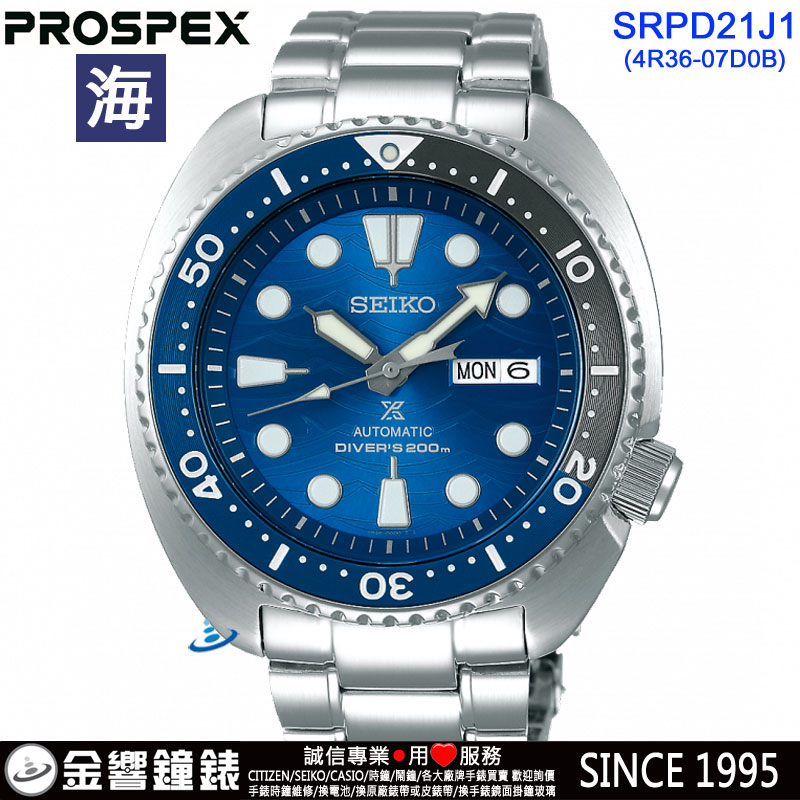 金響鐘錶精品購物網::專賣原廠公司貨:::歡迎議價或門市購買全年優惠 EST.1995 » SEIKO系列 » PROSPEX 錶款 » 客訂商品↘議價歡迎↘,SEIKO SRPD21J1(公司貨,保固2年):::海,PROSPEX,DIVER SCUBA,機械錶,刷卡或3期零利率,4R36-07D0B |