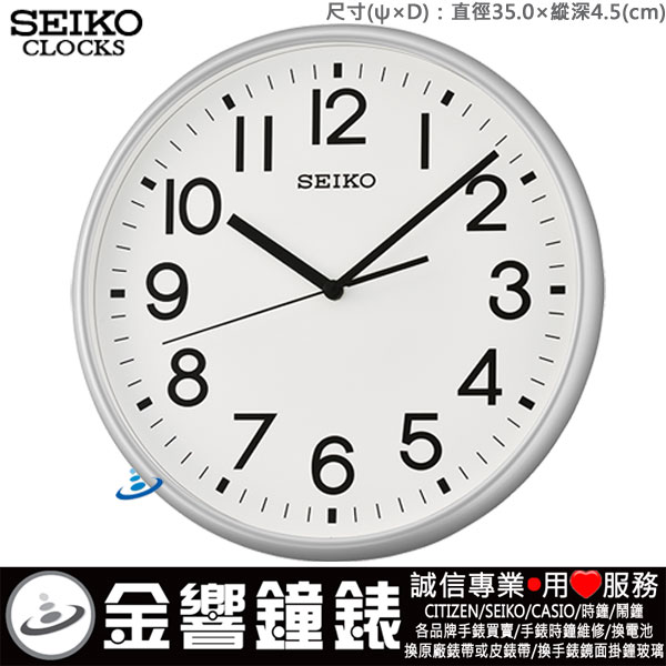 金響鐘錶精品購物網::專賣原廠公司貨:::歡迎議價或門市購買全年優惠 EST.1995 » 時鐘系列 » SEIKO 標準掛鐘 » SEIKO 標準掛鐘(滑動式秒針) » 缺貨,SEIKO QXA677S(公司貨,保固1年):::SEIKO 時尚掛鐘,滑動式秒針,直徑35cm,刷卡不加價,QXA-677S |