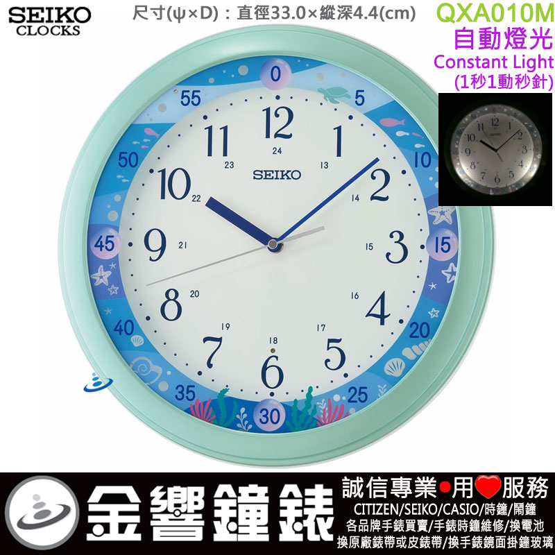 金響鐘錶精品購物網::專賣原廠公司貨:::歡迎議價或門市購買全年優惠 EST.1995 » 時鐘系列 » SEIKO 標準掛鐘 » SEIKO 標準掛鐘 » 【金響鐘錶】現貨,SEIKO QHA010M(公司貨,保固1年):::SEIKO,時尚掛鐘,夜間自動燈光,直徑33cm,時鐘,QHA-010M |