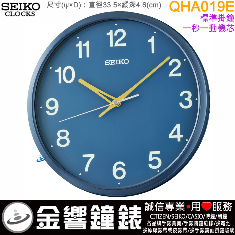 金響鐘錶精品購物網::專賣原廠公司貨:::歡迎議價或門市購買全年優惠 EST.1995 » 時鐘系列 » SEIKO 標準掛鐘 » SEIKO 標準掛鐘 » ●金響鐘錶,現貨,SEIKO QHA019E(公司貨,保固1年):::SEIKO時尚掛鐘,一秒一動秒針,時鐘,塑膠材質,直徑33.5cm,QHA-019E |