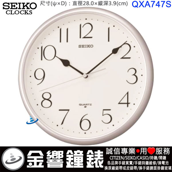 金響鐘錶精品購物網::專賣原廠公司貨:::歡迎議價或門市購買全年優惠 EST.1995 » 時鐘系列 » SEIKO 標準掛鐘 » SEIKO 標準掛鐘 » SEIKO QXA747S(公司貨,保固1年):::SEIKO,時尚掛鐘,標準型,直徑28cm,刷卡不加價,QXA-747S |