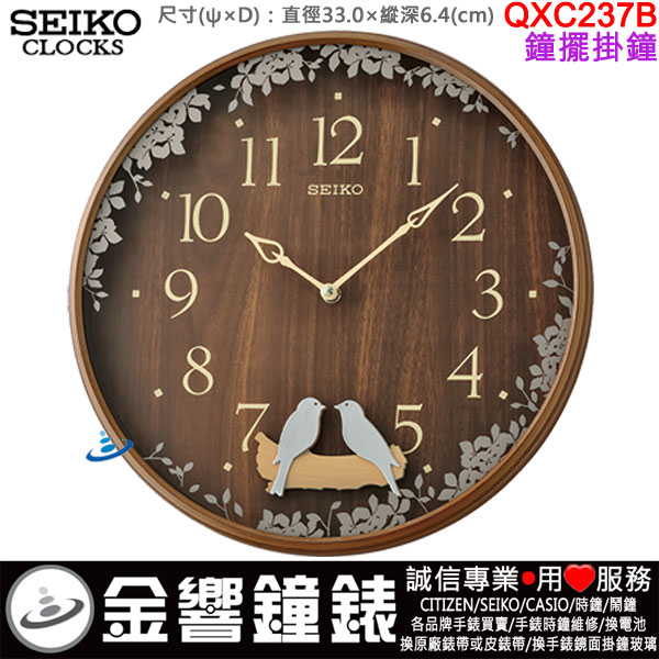 金響鐘錶精品購物網::專賣原廠公司貨:::歡迎議價或門市購買全年優惠 EST.1995 » 時鐘系列 » SEIKO 標準掛鐘 » SEIKO 標準掛鐘 » 【金響鐘錶】現貨,SEIKO QXC237B(公司貨,保固1年):::SEIKO 時尚掛鐘,搖動擺飾,直徑33cm,時鐘,QXC-237B |