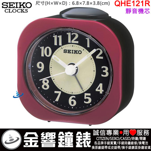 金響鐘錶精品購物網::專賣原廠公司貨:::歡迎議價或門市購買全年優惠 EST.1995 » 其他系列 » SEIKO已完售錶款 » 已完售,SEIKO QHE121R(公司貨,保固1年):::SEIKO指針型鬧鐘,滑動式秒針,嗶嗶聲,夜光,QHE-121R |