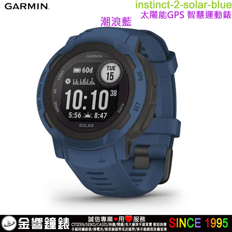 金響鐘錶精品購物網::專賣原廠公司貨:::歡迎議價或門市購買全年優惠 EST.1995 » 其他系列 » GARMIN運動手錶 » instinct-2-solar 太陽能GPS智慧腕錶 » 【金響鐘錶】預購,GARMIN instinct-2-solar-blue潮浪藍(公司貨,保固1年):::本我系列,太陽能GPS智慧腕錶,instinct2solar |