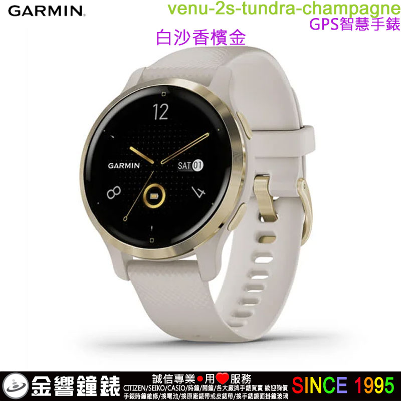 金響鐘錶精品購物網::專賣原廠公司貨:::歡迎議價或門市購買全年優惠 EST.1995 » 其他系列 » GARMIN運動手錶 » venu-2-2S GPS智慧腕錶 » 【金響鐘錶】預購,GARMIN venu-2s-tundra-champagne白沙香檳金(公司貨,保固1年):::GPS智慧腕錶,venu2s |