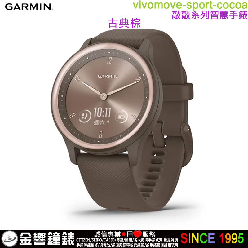 金響鐘錶精品購物網::專賣原廠公司貨:::歡迎議價或門市購買全年優惠 EST.1995 » 其他系列 » GARMIN運動手錶 » vivomove-sport指針智慧腕錶 » 【金響鐘錶】預購,GARMIN vivomove-sport-cocoa古典棕(公司貨,保固1年):::指針智慧腕錶,vivomovesport |