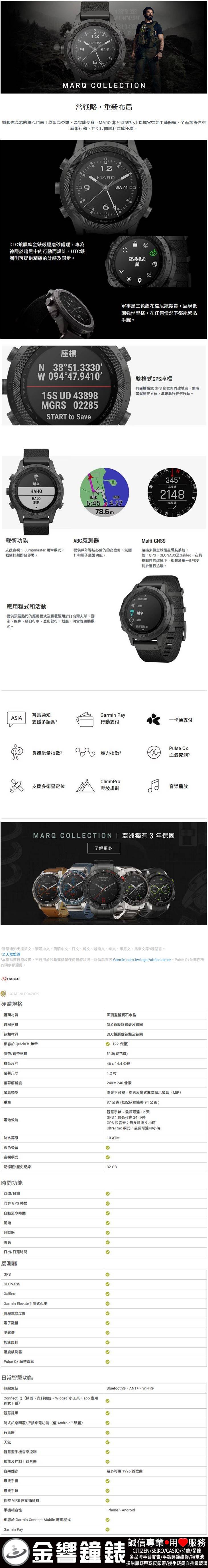 金響鐘錶精品購物網::專賣原廠公司貨:::歡迎議價或門市購買全年優惠 EST.1995 » 其他系列 » GARMIN運動手錶 » MARQ非凡時刻系列 » MARQ Commander指揮官 » 【金響鐘錶】預購,GARMIN MARQ-Commander,指揮官(公司貨,保固1年):::MARQ,非凡時刻系列,指揮官智能工藝腕錶,雙格式GPS座標,刷卡或3期 |