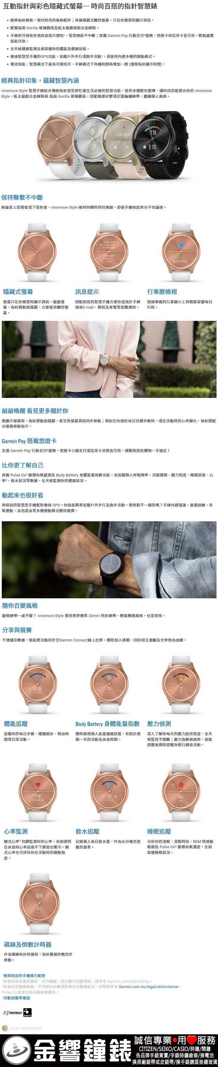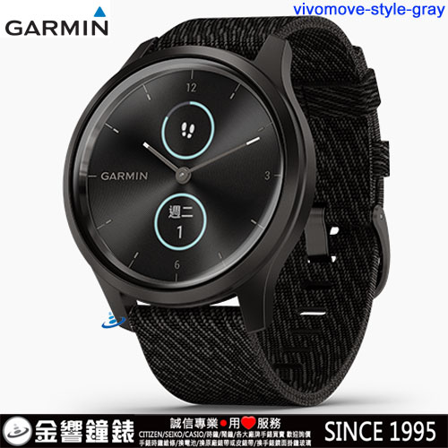 金響鐘錶精品購物網::專賣原廠公司貨:::歡迎議價或門市購買全年優惠 EST.1995 » 其他系列 » GARMIN運動手錶 » vívomove Style 指針智慧腕錶 » 【金響鐘錶】預購,GARMIN vivomove-style-gray碳焙極酷黑(公司貨,保固1年):::指針智慧腕錶,行動支付,多種運動模式,全天候健康監測,vivomovestyle |