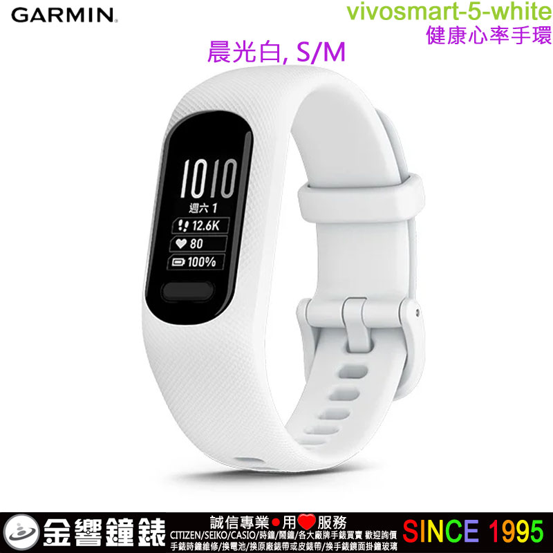 金響鐘錶精品購物網::專賣原廠公司貨:::歡迎議價或門市購買全年優惠 EST.1995 » 其他系列 » GARMIN運動手錶 » vivosmart 5健康心率手環 » 【金響鐘錶】預購,GARMIN vivosmart-5-white晨光白,S/M(公司貨,保固1年):::健康心率手環,準備好,更健康,vivosmart5 |