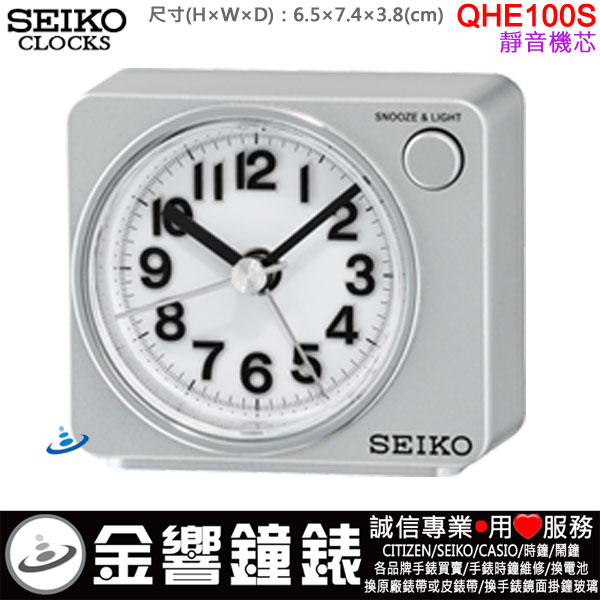 金響鐘錶精品購物網::專賣原廠公司貨:::歡迎議價或門市購買全年優惠 EST.1995 » 時鐘系列 » 鬧鐘 Alarm-Clocks » 指針型鬧鐘(滑動式秒針) » 【金響鐘錶】現貨,SEIKO QHE100S(公司貨,保固1年):::SEIKO指針型鬧鐘,滑動式秒針,嗶嗶聲,燈光,貪睡,LED閃爍,QHE-100S |