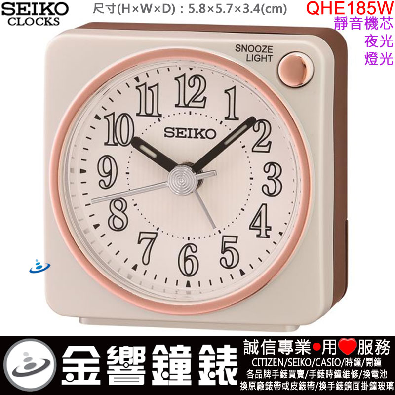 金響鐘錶精品購物網::專賣原廠公司貨:::歡迎議價或門市購買全年優惠 EST.1995 » 時鐘系列 » 鬧鐘 Alarm-Clocks » 指針型鬧鐘(滑動式秒針) » 【金響鐘錶】現貨,SEIKO QHE185W(公司貨,保固1年):::SEIKO指針型鬧鐘,靜音機芯,嗶嗶聲,燈光,夜光,貪睡,QHE-185W |