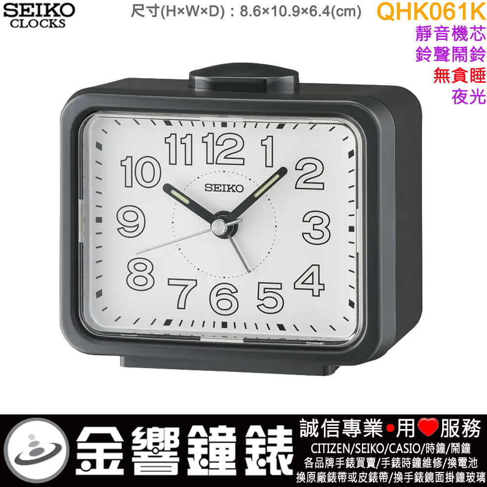 金響鐘錶精品購物網::專賣原廠公司貨:::歡迎議價或門市購買全年優惠 EST.1995 » 時鐘系列 » 鬧鐘 Alarm-Clocks » 指針型鬧鐘(滑動式秒針) » ●金響鐘錶,現貨,SEIKO QHK061K(公司貨,保固1年):::SEIKO,鈴聲鬧鈴,靜音機芯,無貪睡,夜光,QHK-061K |
