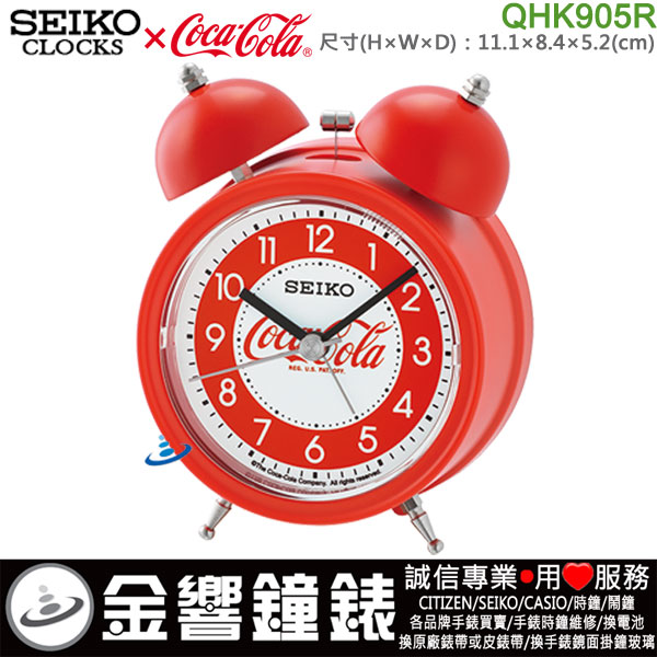 金響鐘錶精品購物網::專賣原廠公司貨:::歡迎議價或門市購買全年優惠 EST.1995 » 時鐘系列 » 鬧鐘 Alarm-Clocks » 指針型鬧鐘(滑動式秒針) » 缺貨,SEIKO QHK905R(公司貨,保固1年):::SEIKO X Coca-Cola,可口可樂聯名款,指針型鈴聲,滑動式秒針,鈴聲,貪睡,燈光,刷卡,QHK-905R |