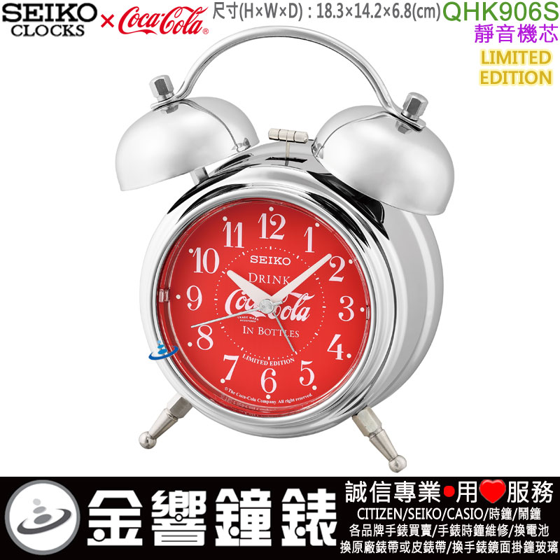 金響鐘錶精品購物網::專賣原廠公司貨:::歡迎議價或門市購買全年優惠 EST.1995 » 時鐘系列 » 鬧鐘 Alarm-Clocks » 指針型鬧鐘(滑動式秒針) » 【金響鐘錶】現貨,SEIKO QHK906S(公司貨,保固1年):::SEIKO X Coca-Cola,可口可樂聯名款,指針型鈴聲,靜音機芯,鈴聲,貪睡,燈光,刷卡,QHK-906S |