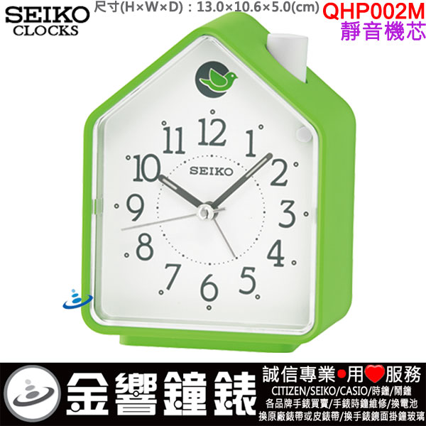 金響鐘錶精品購物網::專賣原廠公司貨:::歡迎議價或門市購買全年優惠 EST.1995 » 時鐘系列 » 鬧鐘 Alarm-Clocks » 指針型鬧鐘(滑動式秒針) » 【金響鐘錶】現貨,SEIKO QHP002M(公司貨,保固1年):::SEIKO指針型鬧鐘,靜音機芯,兩組鳥鳴,嗶嗶聲,夜光,燈光,QHP-002M |