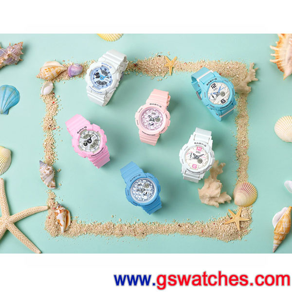![]() 由G-SHOCK熱銷錶款GA-110縮小而來的BA-110,推出以「Beach Colors」為設計概念的全新系列BA-110BE,色系選擇包含BA-110BE-4A,充滿粉嫩春天氣息的粉紅色,猶如陽光照耀著沙灘上的貝殼,創造出柔和的海邊景緻,而BA-110BE-7A為象徵夏季海洋的藍色色彩,全白的錶款搭配錶盤的藍色細節點綴,呈現出清爽柔和的效果,功能上提供提供世界時間、1/100計時碼錶、倒數計時、鬧鈴…等多項功能,兼具時尚外觀及豐富機能,完美打造夏季海洋風格。 。 ●原廠建議售價:NT$4,200 ●耐衝擊構造 ●Neobrite夜光塗料指針 ●礦物玻璃 ●防水100米 ●LED照明(餘暉設計) ●世界時間 ●29個時區(48城市+世界對應時間)、城市代碼顯示、日光節約時間(開/關) ●1/100秒計時碼錶:    測量上限:23:59'59.999"    測量單位:1秒 ●整點響報 ●全自動月曆(至2099年) ●12/24小時制切換 ●操作音(開啟/關閉) ●時間模式:    指針:兩針(時、分(每20秒移動一次)) ●電池壽命估計值:2年(使用SR726W*2)  |