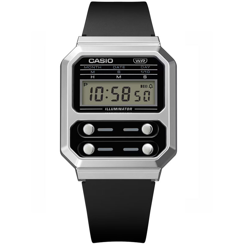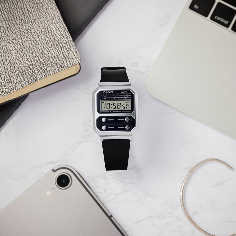現貨供應中!! 有門市可自取!!! Casio Vintage 復古系列以簡約、時尚、中性為設計主軸,喚起內心的懷舊復古。在歷久不衰的Casio手錶上運用單色設計,盡情享受對於所有復古事物的熱愛。為了向首款採用樹脂錶殼的Casio手錶F‐100致敬,A-100系列承襲了具代表性的四個正面按鈕,加入復古風金屬零件,重新演繹真正的經典。此錶款雖走復古風,但卻滿載現代化功能,具備碼錶、日曆和防水功能,方便日常使用,當然還有LED燈照明,讓您在任何光線條件下皆可輕鬆閱讀資訊。 [注/意/事/項] |