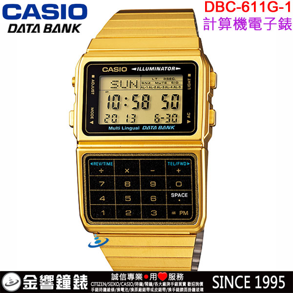 金響鐘錶精品購物網::專賣原廠公司貨:::歡迎議價或門市購買全年優惠 EST.1995 » CASIO系列 » FASHION 時尚錶款 » 【金響鐘錶】現貨,CASIO DBC-611G-1(公司貨,保固1年):::DATABANK計算機系列,經典錶款,25組電話記憶,兩地時間,碼錶,鬧鈴,DBC611G |