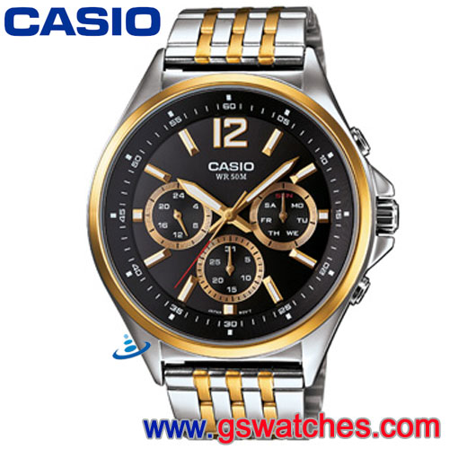 金響鐘錶精品購物網::專賣原廠公司貨:::歡迎議價或門市購買全年優惠 EST.1995 » CASIO系列 » FASHION 時尚錶款 » 客訂商品,CASIO MTP-E303SG-1AVDF(公司貨,保固1年):::指針男錶,經典大方,三眼六針,不鏽鋼錶帶,星期,日期,24時制,刷卡或3期零利率,MTPE303SG |
