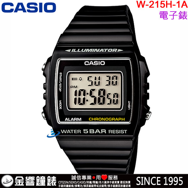 金響鐘錶精品購物網::專賣原廠公司貨:::歡迎議價或門市購買全年優惠 EST.1995 » CASIO系列 » FASHION 時尚錶款 » 【金響鐘錶】預購,CASIO W-215H-1AVDF(公司貨,保固1年):::方形數字錶,大型液晶錶面,LED照明,碼錶,每日鬧鈴,手錶,W215H |