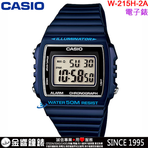 金響鐘錶精品購物網::專賣原廠公司貨:::歡迎議價或門市購買全年優惠 EST.1995 » CASIO系列 » FASHION 時尚錶款 » 【金響鐘錶】預購,CASIO W-215H-2AVDF(公司貨,保固1年):::方形數字錶,大型液晶錶面,LED照明,碼錶,每日鬧鈴,手錶,W215H |