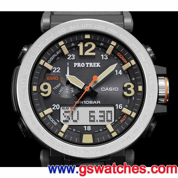 金響鐘錶精品購物網::專賣原廠公司貨:::歡迎議價或門市購買全年優惠 EST.1995 » CASIO系列 » PRO-TREK專業登山錶 » CASIO PRG-600-1DR(公司貨,保固1年):::PRO TREK太陽能專業登山錶,指針數字雙顯,溫度,高度,氣壓,方位,免運費,刷卡或3期零利率,PRG600 |