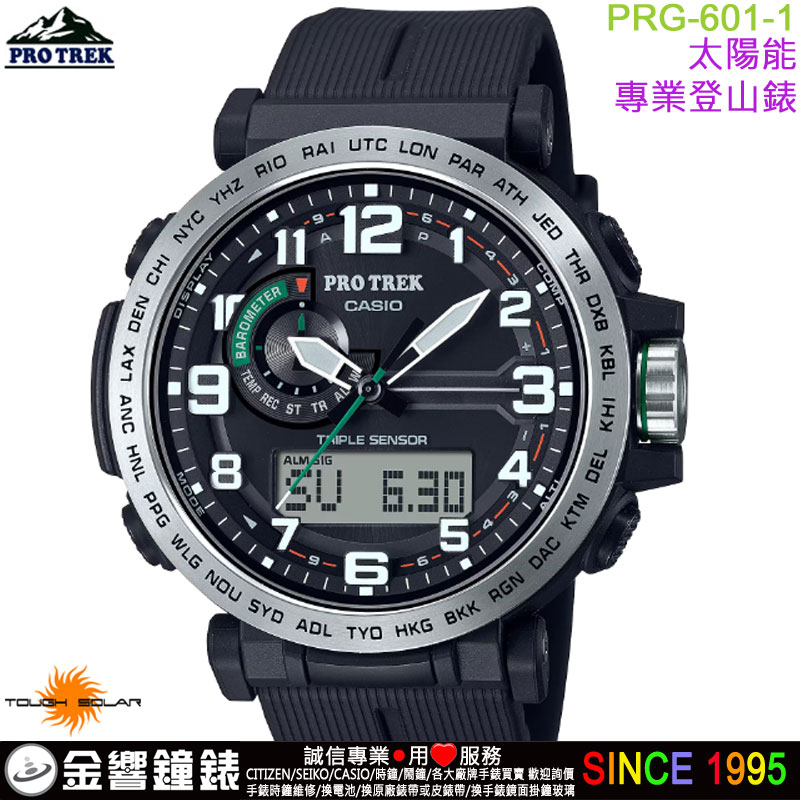 金響鐘錶精品購物網::專賣原廠公司貨:::歡迎議價或門市購買全年優惠 EST.1995 » CASIO系列 » PRO-TREK專業登山錶 » 【金響鐘錶】預購,CASIO PRG-601-1DR(公司貨,保固1年):::PRO TREK,太陽能專業登山錶,溫度,高度,氣壓,方位,PRG601 |