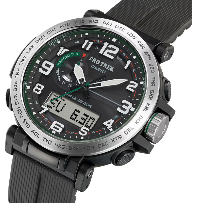 ![]() 本賣場手錶貨源庫存狀況:預購商品(客訂商品) ●預購商品(客訂商品) (※下單前務必透過問與答先詢問貨源※),貨源確認後,下單後約1~3天內寄出 ※注意:預購商品(客訂商品)訂購經確認後,不能取消或更改,新品不良保證換新。※ 金響鐘錶官網 或金響門市還有更多錶款供您選擇!! 金響鐘錶是您購錶的最佳選擇!!! ※賣場沒刊登的其他款式手錶或其他廠牌手錶,都可以利問與答詢問價格。 台灣卡西歐原廠公司貨保證書,保固一年。 ●金響鐘錶販售之CASIO手錶皆為CASIO原廠代理之公司貨,附有台灣卡西歐原廠公司貨保證書(保固一年)與原廠錶盒及說明書。 勇敢嘗試,探索精彩的戶外活動!選擇PRO TREK PRG-601,其採用對於環境影響減少較輕的材料,並配備粗獷帥氣的大型數字時標。數位羅盤、氣壓計/高度計和溫度計三重感應器可幫助您隨時掌握自然環境的變化,而Tough Solar太陽能充電可將光線轉換為手錶所需的電能。錶盤上突出的數字時標與寬大的不鏽鋼錶圈相得益彰。錶殼、背蓋和柔軟樹脂錶帶採用的生質樹脂材質是以蓖麻和玉米等可再生有機資源製作而成,能減少這款手錶對環境的影響。這款手錶結合簡約的手錶美學和正宗的戶外裝備堅固性,無論您身在城市還是在野外,都能成為您的最佳戰友。 |