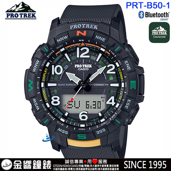 金響鐘錶精品購物網::專賣原廠公司貨:::歡迎議價或門市購買全年優惠 EST.1995 » CASIO系列 » PRO-TREK專業登山錶 » 【金響鐘錶】現貨,CASIO PRT-B50-1DR(公司貨,保固1年):::藍牙,PRO TREK,專業登山錶,指針數字雙顯,溫度,高度,氣壓,方位,日出日落,計步器,PRTB50 |