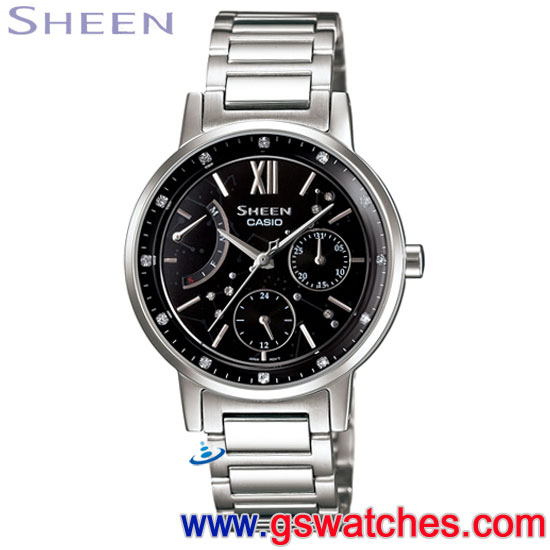 金響鐘錶精品購物網::專賣原廠公司貨:::歡迎議價或門市購買全年優惠 EST.1995 » CASIO系列 » Sheen 錶款 » CASIO SHE-3028D-1AUDR(公司貨,保固1年):::Shee,Cruise Line奢華系列,日期,星期,24小時指針,刷卡不加價或3期零利率,SHE3028D |