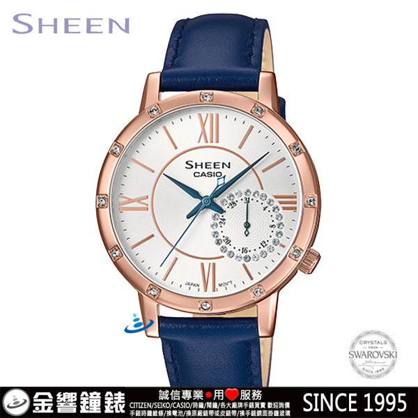 金響鐘錶精品購物網::專賣原廠公司貨:::歡迎議價或門市購買全年優惠 EST.1995 » CASIO系列 » Sheen 錶款 » 客訂商品,CASIO SHE-3046GLP-7CUDF(公司貨,保固1年):::Sheen,時尚女錶,日期,刷卡或3期零利率,SHE3046GLP |