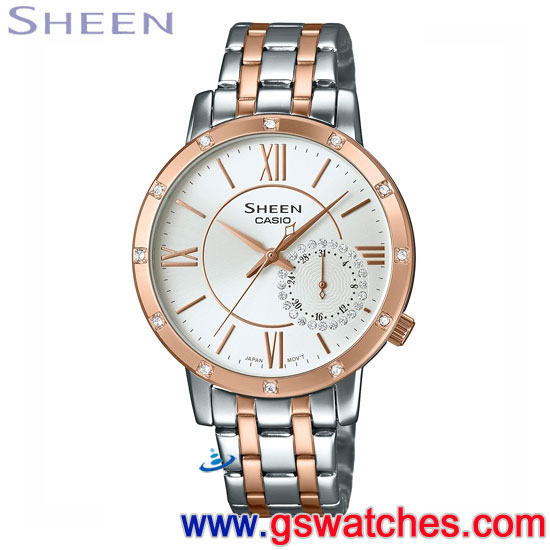 金響鐘錶精品購物網::專賣原廠公司貨:::歡迎議價或門市購買全年優惠 EST.1995 » CASIO系列 » Sheen 錶款 » CASIO SHE-3046SGP-7AUDR(公司貨,保固1年):::Shee,Cruise Line奢華系列,日期,刷卡不加價或3期零利率,SHE3046SGP |