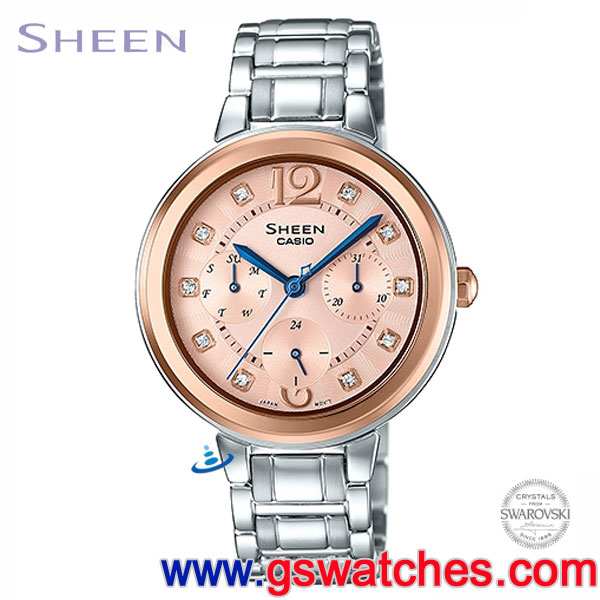 金響鐘錶精品購物網::專賣原廠公司貨:::歡迎議價或門市購買全年優惠 EST.1995 » CASIO系列 » Sheen 錶款 » CASIO SHE-3048SG-7AUDR(公司貨,保固1年):::Sheen Cruise Line奢華系列,日期,星期,24小時指針,施華洛世奇,刷卡不加價或3期零利率,SHE3048SG |