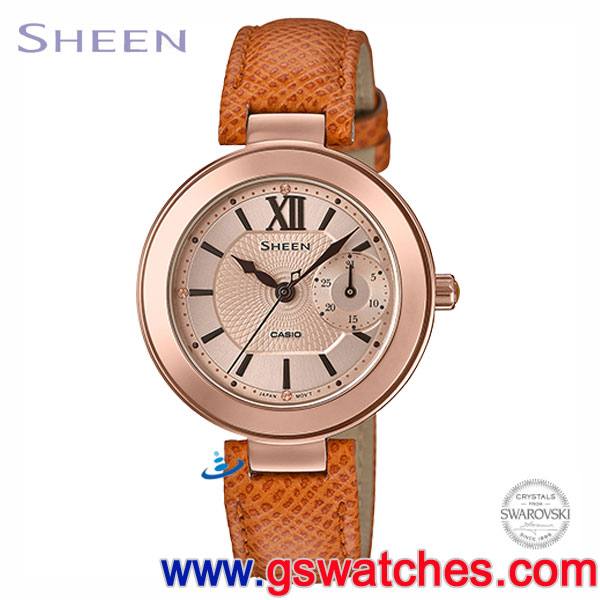 金響鐘錶精品購物網::專賣原廠公司貨:::歡迎議價或門市購買全年優惠 EST.1995 » CASIO系列 » Sheen 錶款 » 客訂商品,CASIO SHE-3051PGL-7AUDF(公司貨,保固1年):::Sheen,時尚女錶,日期,施華洛世奇水晶,刷卡不加價或3期零利率,SHE3051PGL |