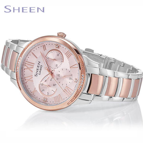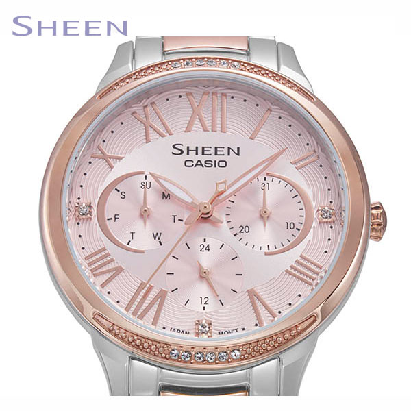 金響鐘錶精品購物網::專賣原廠公司貨:::歡迎議價或門市購買全年優惠 EST.1995 » CASIO系列 » Sheen 錶款 » 客訂商品,CASIO SHE-3058SPG-4AUDR(公司貨,保固1年):::Sheen,時尚女錶,日期,星期,24小時指針,刷卡不加價或3期零利率,SHE3058SPG |