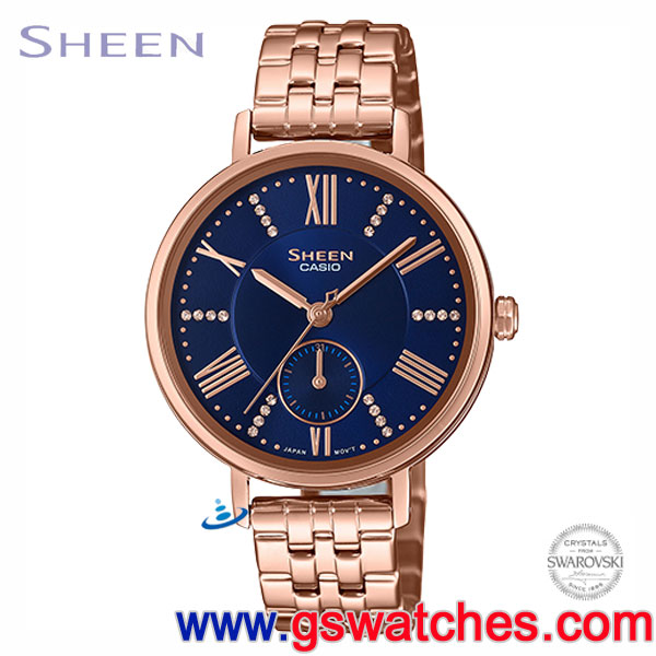 金響鐘錶精品購物網::專賣原廠公司貨:::歡迎議價或門市購買全年優惠 EST.1995 » CASIO系列 » Sheen 錶款 » 客訂商品,CASIO SHE-3066PG-2AUDF(公司貨,保固1年):::Sheen,時尚女錶,日期,刷卡或3期零利率,SHE3066PG |