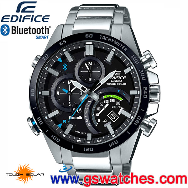 以Speed & Intelligence 為品牌精神的EDIFICE,推出全新藍牙智慧錶款EQB-501XD/ EQB-501XDB全新系列,維持傳統不鏽鋼腕錶設計,搭載Bluetooth® Smart 藍牙低功耗技術,可同步傳輸智慧型手機的當地時間至手錶,亦可透過專屬APP於智慧型手機直接設定300個城市的世界時間與手機尋找功能,並藉由網路連線至時間伺服器,精準提供各時區與日光節約時間。搭載太陽能電力系統,將光線轉換為電能動力,維持手錶各項功能的持續運作。其他多元機能包含每天自動更新四次的時間資訊、兩地時間同步顯示、碼表、獨立鬧鈴等功能,可將碼表的資料傳輸至手機App,可儲存100圈的經過時間和中途時間,最小單位可到1/1,000秒,而10-11點鐘方向還提供了電量指示,貼心設計可安心使用各種功能。外觀上皆為不鏽鋼錶帶與錶殼,錶圈部分點綴上TACHYMETER計速儀設計,讓整體外觀展現出賽車的運動速度感,有銀色搭配紅色細節點錶盤或黑色離子IP錶圈搭配藍綠兩色細節點綴錶盤的選擇。