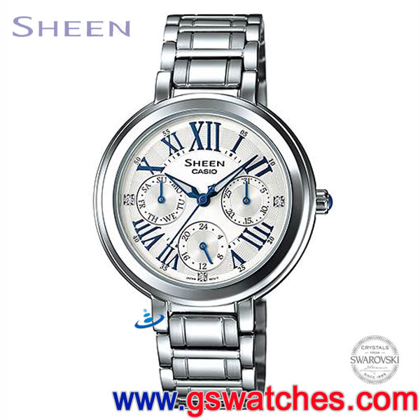 金響鐘錶精品購物網::專賣原廠公司貨:::歡迎議價或門市購買全年優惠 EST.1995 » 其他系列 » CASIO已完售錶款 » 已完售,CASIO SHE-3034D-7AUDR(公司貨,保固1年):::Sheen,時尚女錶,日期,星期,24小時指針,SHE3034D |