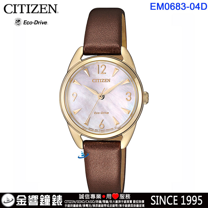 dot 金響鐘錶精品購物網::專賣原廠公司貨:::歡迎議價或門市購買全年優惠 EST.1995 » CITIZEN系列 » LADY'S 時尚女錶 » 客訂商品,CITIZEN EM0683-04D(公司貨,保固2年):::Eco-Drive光動能,時尚女錶,生活防水,刷卡或3期零利率,EM068304D