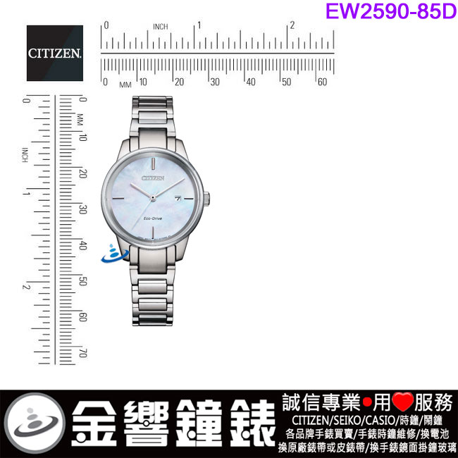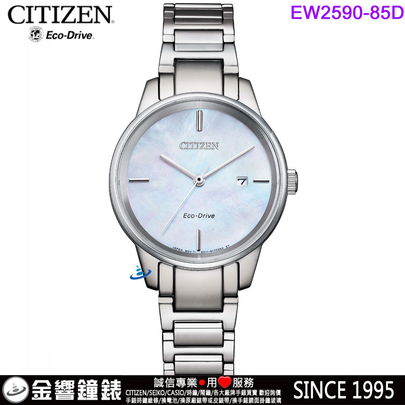 金響鐘錶精品購物網::專賣原廠公司貨:::歡迎議價或門市購買全年優惠 EST.1995 » CITIZEN系列 » LADY'S 時尚女錶 » 【金響鐘錶】現貨,CITIZEN EW2590-85D(公司貨,保固2年):::Eco-Drive,光動能,女錶,藍寶石,日期,E011機芯,刷卡或3期,EW259085D |