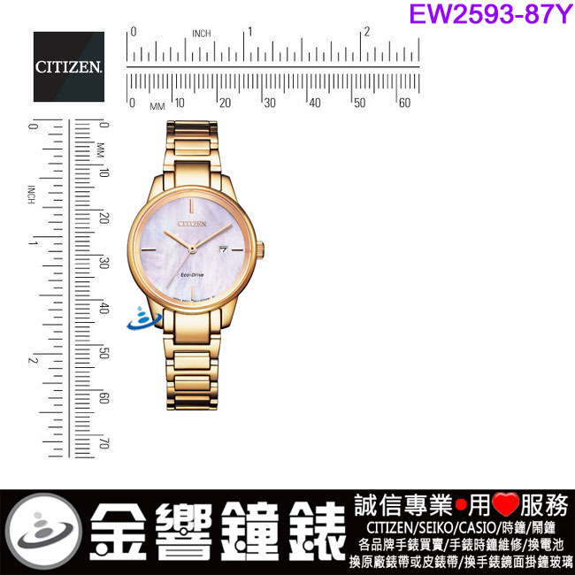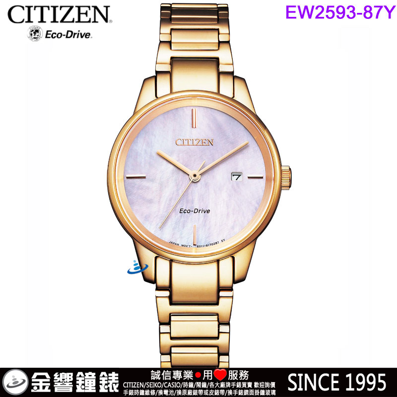 金響鐘錶精品購物網::專賣原廠公司貨:::歡迎議價或門市購買全年優惠 EST.1995 » CITIZEN系列 » LADY'S 時尚女錶 » 【金響鐘錶】現貨,CITIZEN EW2593-87Y(公司貨,保固2年):::Eco-Drive,光動能,女錶,藍寶石,日期,E011機芯,刷卡或3期,EW259387Y |