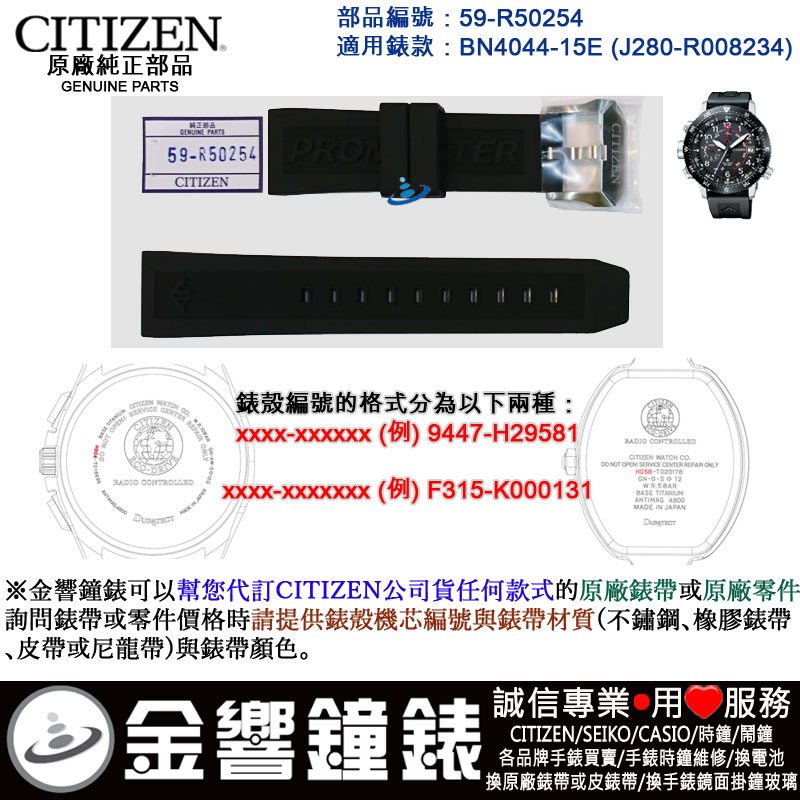 金響鐘錶精品購物網::專賣原廠公司貨:::歡迎議價或門市購買全年優惠 EST.1995 » 其他系列 » 錶帶WATCHBAND » CITIZEN原廠純正部品 » 【金響鐘錶】預購,CITIZEN 59-R50254(橡膠錶帶-原廠純正部品):::BN4044-15E,J280-R008234,專用 |