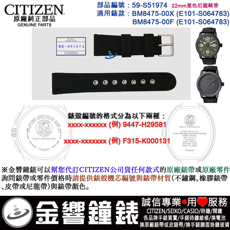 金響鐘錶精品購物網::專賣原廠公司貨:::歡迎議價或門市購買全年優惠 EST.1995 » 其他系列 » 錶帶WATCHBAND » CITIZEN原廠純正部品 » 【金響鐘錶】預購,CITIZEN 59-S51974(黑色尼龍錶帶-原廠純正部品):::BM8475-00X,BM8475-00F,E101-S064783,專用 |