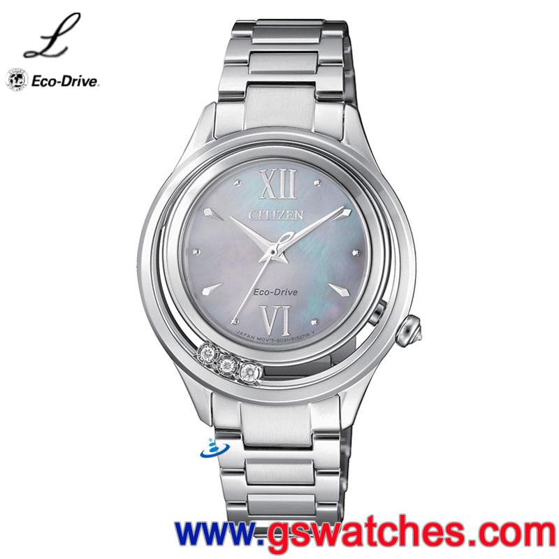金響鐘錶精品購物網::專賣原廠公司貨:::歡迎議價或門市購買全年優惠 EST.1995 » CITIZEN系列 » L 錶款 » CITIZEN EM0510-88D(公司貨,保固2年):::CITIZEN L光動能系列,藍寶石鏡面,4顆天然鑽,白蝶貝面板,免運費,刷卡或3期零利率,EM051088D |