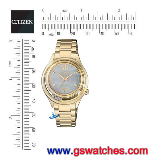 ●金響鐘錶販售之CITIZEN星辰錶皆為星辰錶公司(日本CITIZEN台灣分公司),代理之原廠公司貨,附有原廠保證書(保固二年(2011年10月1日全系列星辰錶開始實施台灣二年保固 / 國外保固一年政策))與原廠錶盒及說明書。 ●JAPAN MOV'T 日本製機芯 ●Eco-Drive光動能,充滿電後可連續運作6個月 ●不銹鋼鍍金錶殼錶帶 ●球面藍寶石玻璃鏡面 ●白蝶貝面板 ●4顆天然鑽石 ●5氣壓防水 ●雙邊按壓H型帶扣 ■尺寸/重量 錶殼尺寸(W×H):32.5×38.2(mm) 鏡面直徑(ψ):21.8(mm)