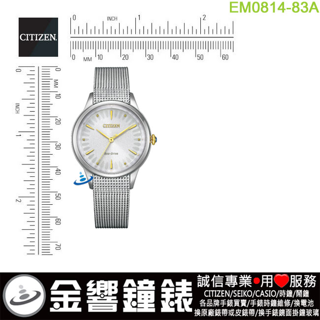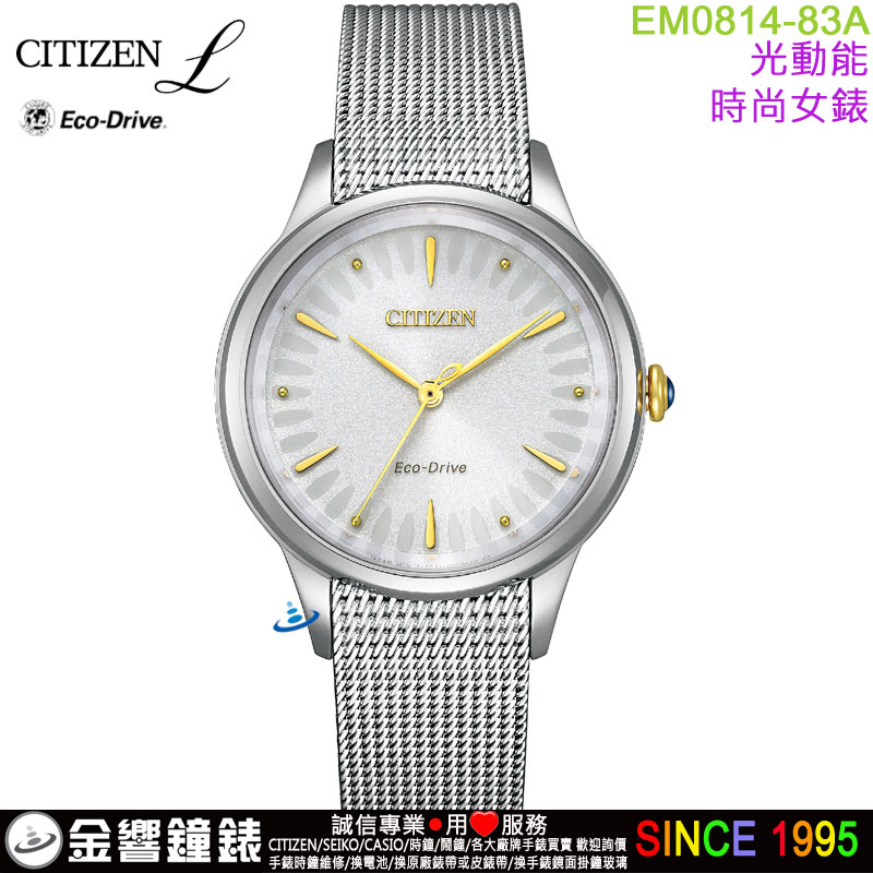 金響鐘錶精品購物網::專賣原廠公司貨:::歡迎議價或門市購買全年優惠 EST.1995 » CITIZEN系列 » L 錶款 » 【金響鐘錶】現貨,CITIZEN EM0814-83A(公司貨,保固2年):::CITIZEN L,光動能,藍寶石鏡面,5氣壓防水,EM081483A |