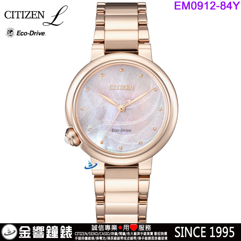 金響鐘錶精品購物網::專賣原廠公司貨:::歡迎議價或門市購買全年優惠 EST.1995 » CITIZEN系列 » L 錶款 » 【金響鐘錶】預購,CITIZEN EM0912-84Y(公司貨,保固2年):::CITIZEN L,光動能,藍寶石鏡面,白蝶貝面盤,1顆鑽石,1顆黃玉,E031機芯,EM091284Y |