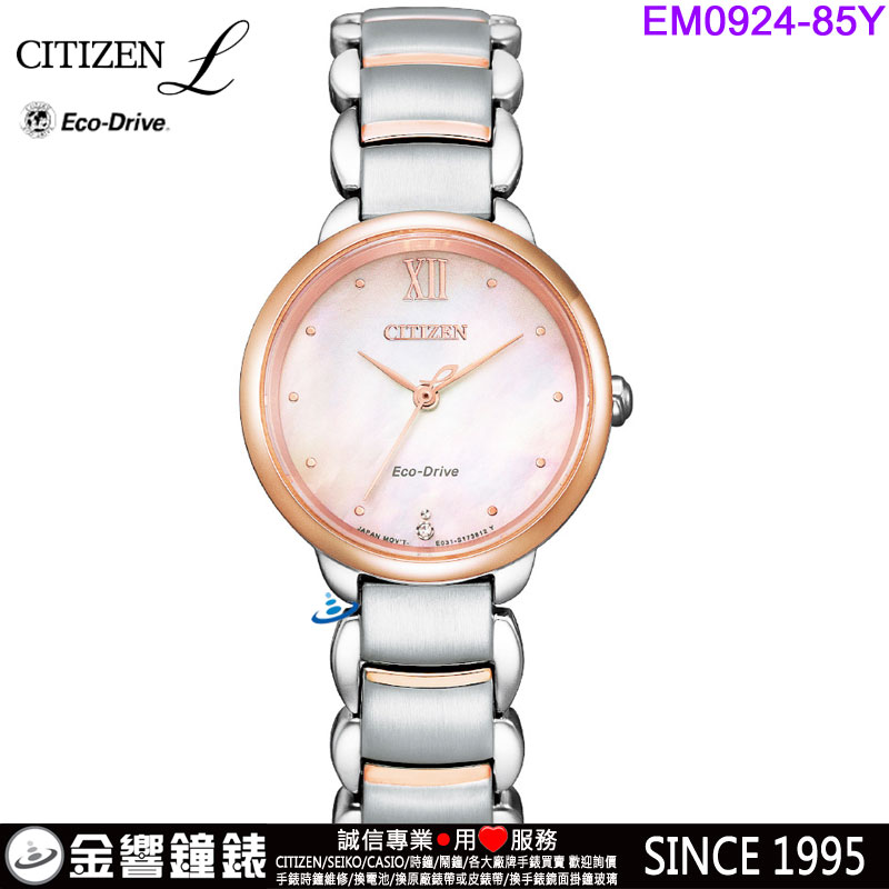 dot 【金響鐘錶】現貨,CITIZEN EM0924-85Y(公司貨,保固2年):::CITIZEN L,光動能,藍寶石鏡面,1顆鑽石,白蝶貝面板,E031機芯,EM092485Y