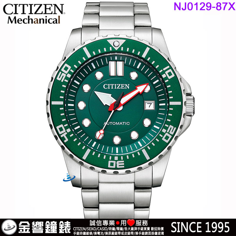 dot 金響鐘錶精品購物網::專賣原廠公司貨:::歡迎議價或門市購買全年優惠 EST.1995 » CITIZEN系列 » Mechanical 機械錶 » 【金響鐘錶】現貨,CITIZEN NJ0129-87X(公司貨,保固2年):::機械錶款,自動上鍊,日期顯示,強化玻璃鏡面,8210機芯,NJ012987X