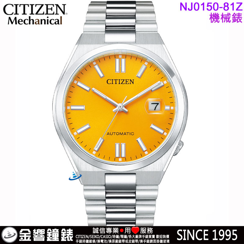金響鐘錶精品購物網::專賣原廠公司貨:::歡迎議價或門市購買全年優惠 EST.1995 » CITIZEN系列 » Mechanical 機械錶 » 已完售,CITIZEN NJ0150-81Z曜黃新星(公司貨,保固2年):::機械錶款,自動上鍊,日期顯示,藍寶石玻璃鏡面,8210機芯,NJ015081Z |